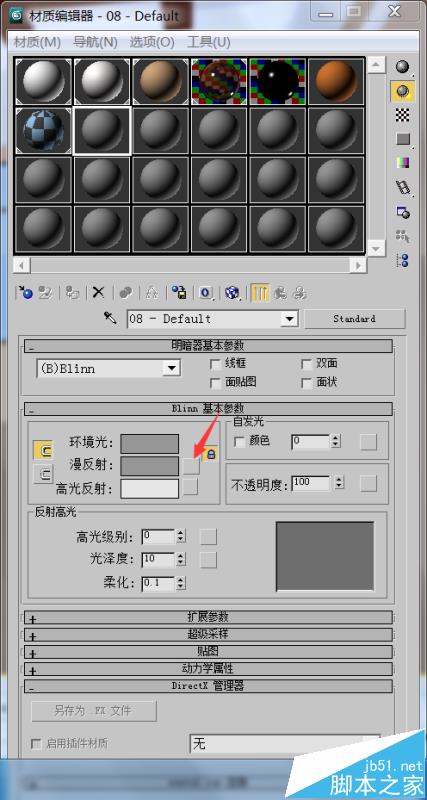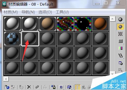 2、這里有很多材質球,選擇一個沒有貼圖的材質球