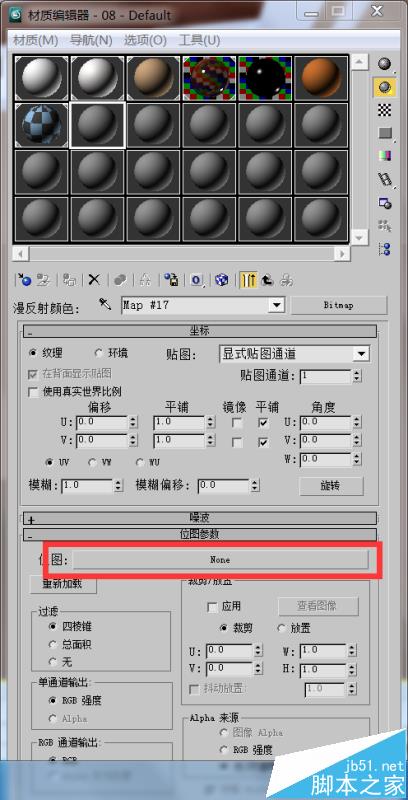3、在下面編輯材質球的漫反射貼圖,點擊這后面的小方點