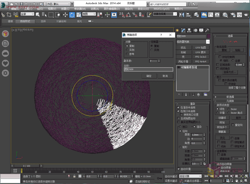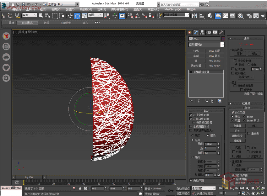 5,畫好線以后點右鍵停止,在修改面板中,將在渲染中啟用和視口中啟用打開,調節厚度,為減少模型面數,邊沒必要太多。