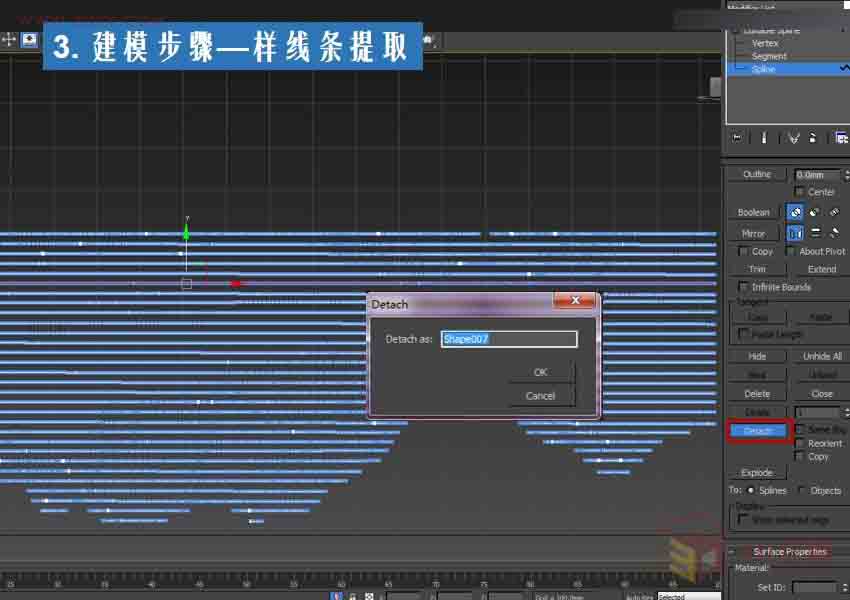 第十一步:別嫌麻煩,每層線(shape)單獨分離(Detach)出去。