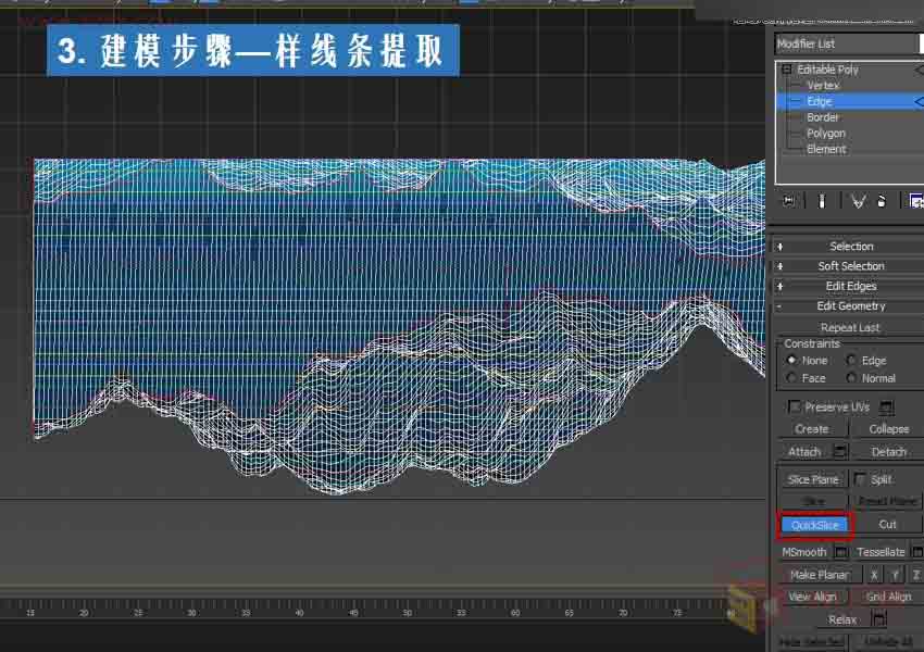 用小一的插件的橫截面作為標準,在邊級別下,用快速切割(QuickSlice)配合捕捉切出橫向的線。