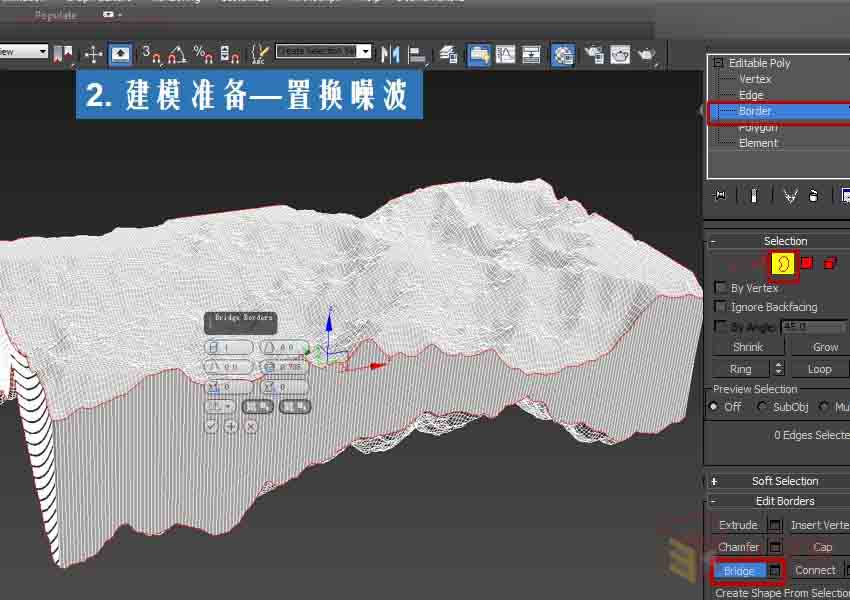 第七步:因為是同一個面片轉換來的,在邊緣(Border)級別下,橋接(Bridge)即可!