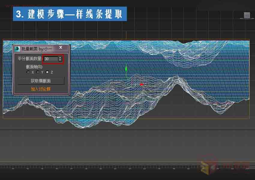 第九步:現在對模型進行批量橫截面,小一的插件點擊下載→【腳本插件】3ds max 批量截面工具,注意截面軸向。