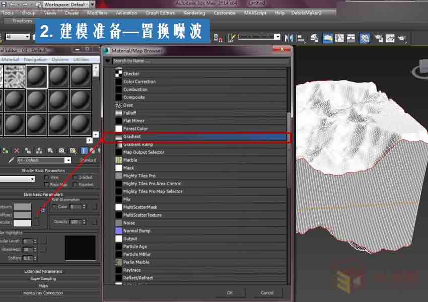 第八步:添加一個漸變顏色(Gradient)的材質球。