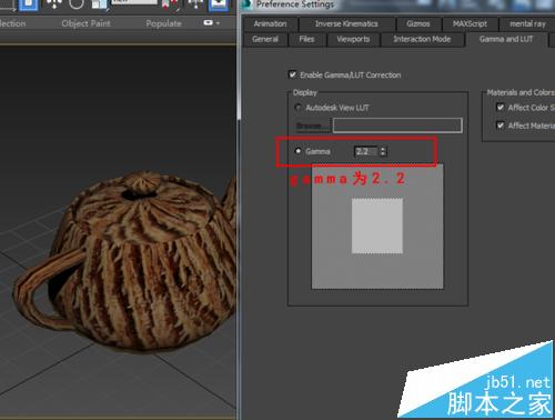 2、如果在Customize——preference——Gamma and LUT中設(shè)置Gamma,會(huì)改變整個(gè)場(chǎng)景明暗。