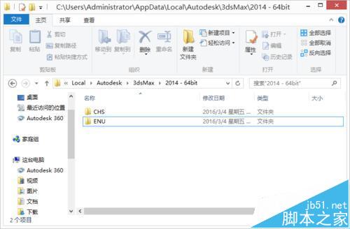 1、找到系統盤目錄:C:/用戶/Administrator/AppData/Local/Autodesk/3dsMax/2014 - 64bit(各版本信息不同文件夾),文件夾里面有你用過的語言版本的文件夾,如圖所示,一個是英文版的數據,一個文件夾是中文的,哪個版本錯誤,就刪掉哪個文件夾。(記得先備份,以防失策!)