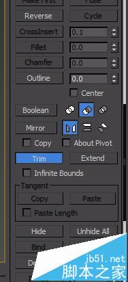 2、選中Trim 選項 ,選擇后在單機要剪切掉的樣條線