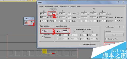 5、繼續(xù)陣列,Attach合并三層窗子,及【9.9*30m】的墻面