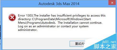 問題一:安裝3ds Max 2014時出現Error 1303.提示