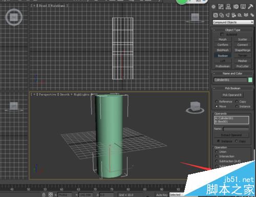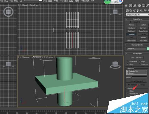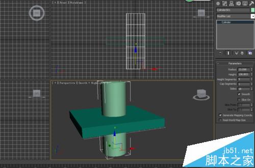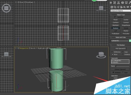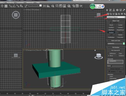 1、首先我們建立兩個基本體,一個圓柱和一個正方形,二者混合在一起,可以更好的介紹一下布爾運算!