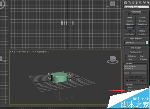 3、選擇boolean之后,我們看到有個pick operandB 這個就是拾取運算的對象,我們選擇圓柱體,如圖所示,我沒看他們的交合部分就流出來了,