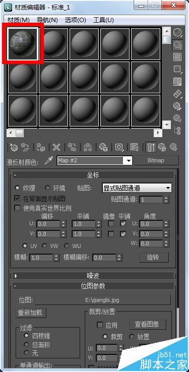 5、如圖。給材質(zhì)球貼圖之后,材質(zhì)球有了圖片