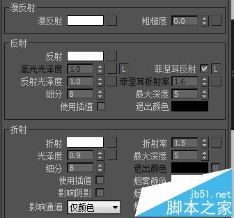 漫反射:漫反射在玻璃材質中的表現是不起作用的,這里一般給個接近白色就行。
