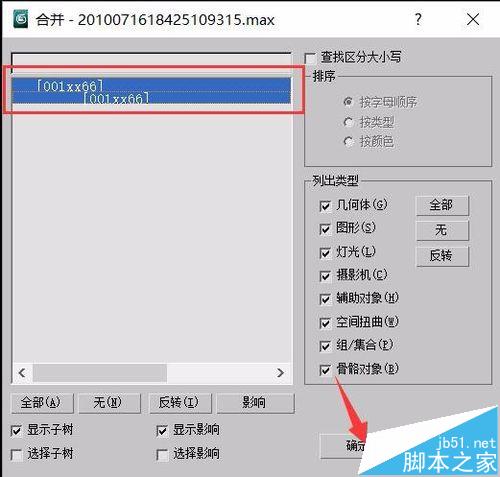 4、選中這文件中要導(dǎo)入的模型,并點(diǎn)擊確定