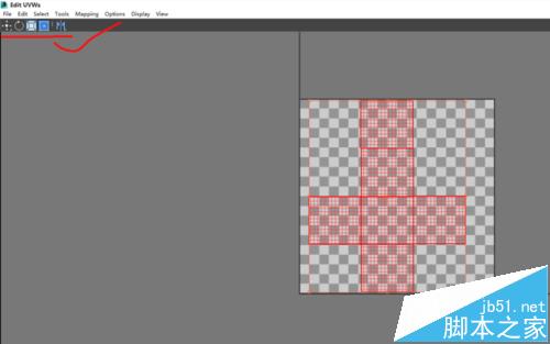 10、如圖左上角的幾個按鈕分別是 "移動,旋轉,縮放”等等功能按鈕,我現在利用它們把UV放正了