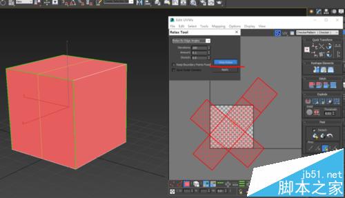 7、我們選擇的正方體的(邊)呈現綠色,說明已經被剪開了,接下來我們點擊鼠標右鍵,在菜單中選擇“Relax”前面的小方格,是小方格哦不要選錯(注:Relax是放松的意思,在這里只能在(面)的級別下選擇)
