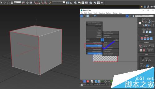 6、讓我們來思考一下,想展開這個正方體,有兩種方法可以選擇,一種是每個(邊)都(剪開),讓每個(面)都成為獨立的(面);另外一種方法是,讓一個(面)為底,把其它(面)剪開,但有一條(邊)是連著的,整體還是連在一起的。那我就用第二種方式,把相應的(邊)選好后,點擊鼠標右鍵,在菜單中點擊“Break”(注:剪開的意思,這里只能用在(邊)選項)