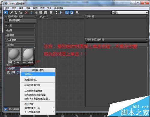 3、在臨時材質庫上單擊右鍵,不是你要保存的材質上單擊右鍵
