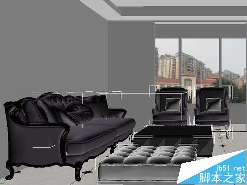 7、切換到攝像機視圖,就能看到已導入的沙發,最后給沙發貼上自己想要的貼圖就可以了。