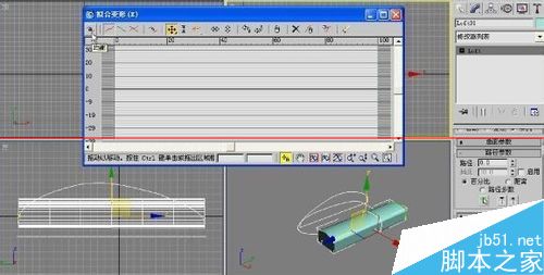 2、在頂視圖中選擇“基礎路徑”,然后進行基本放樣操作,選擇前視圖中的“基礎截面”。進入修改命令面板,展開“變形”卷展欄,單擊其中的“擬合”按鈕,在彈出的窗口中單擊“均衡”按鈕取消坐標軸的鎖定狀態,這樣可以分別對兩個軸進行調整,效果如圖所示。