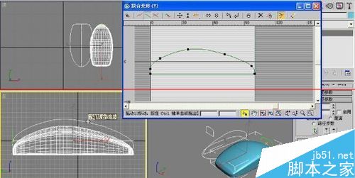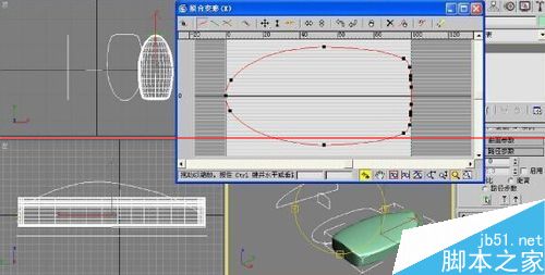 3、單擊“獲取圖形”按鈕,然后在頂視圖中選取“X軸擬合圖形”,這時可以看到視圖中出現了一個變形的造型。單擊“順時針旋轉90度”按鈕,效果如圖所示