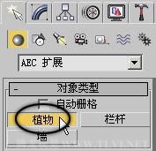 4、下面舉例為大家舉例示范:創建植物模型。首先單擊植物按鈕,在”收藏植物“卷展欄中選擇一種植物縮略圖。