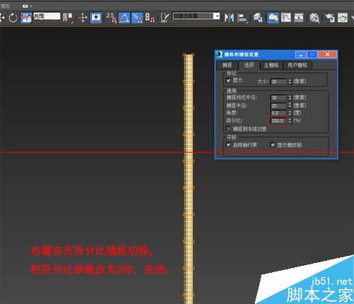 1、在頂視圖創(chuàng)建圓柱體,參數(shù)為:半徑20、高度2000、高度片段劃分:100。