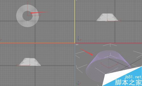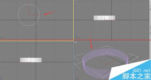 3、在頂視圖單擊左鍵拖拽,然后釋放左鍵,再拉伸出彈簧高度,再單擊左鍵拖拽,釋放左鍵;