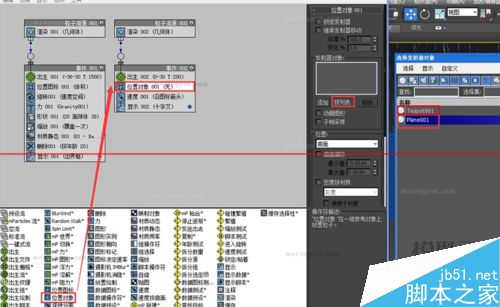 15、為其添加位置對象事件,并拾取場景中的茶壺和平面(因為雨水會落在地面和茶壺身上,所以飛濺效果需要從這個兩個物體身上發(fā)出).