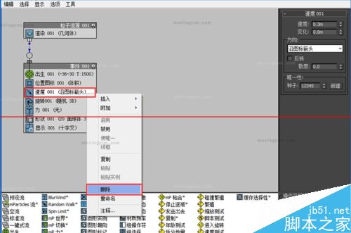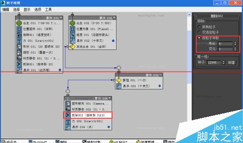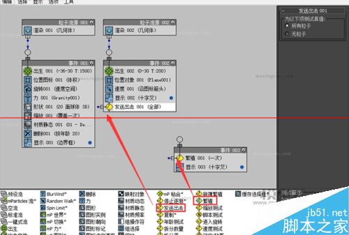 20、將繁殖事件連接至"事件004"并設(shè)置粒子刪除事件.