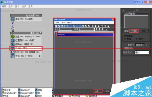 8、向"事件001"中添加"力",并拾取剛才的創(chuàng)建的"重力".