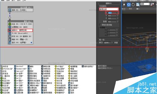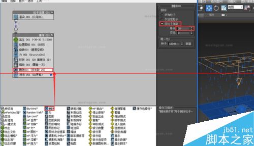 11、向"事件001"中添加刪除事件,選擇移除類型為"按粒子年齡",并調(diào)整壽命值,同時觀察試圖,使得雨水落在平面以下的部分被刪除就可以了(這步也可以省略).