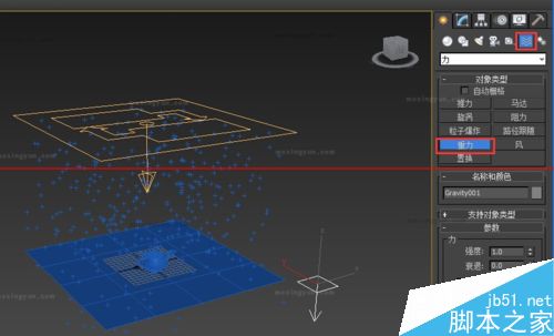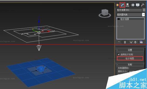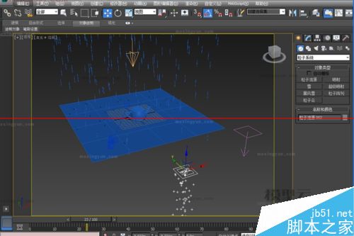3、將高度調(diào)整到平面以上,讓雨水從天上降下來,并打開"粒子視圖".