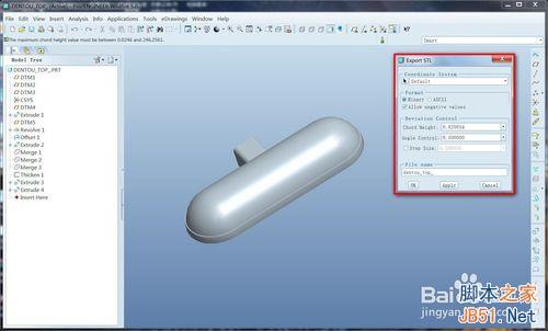 3、點(diǎn)擊ok后會(huì)彈出一個(gè)stl的參數(shù)面板,默認(rèn)的stl參數(shù)三角面的尺寸偏大,這樣導(dǎo)出去表面不夠光滑,特別是曲面的時(shí)候。