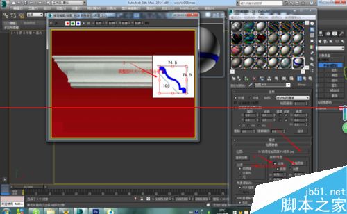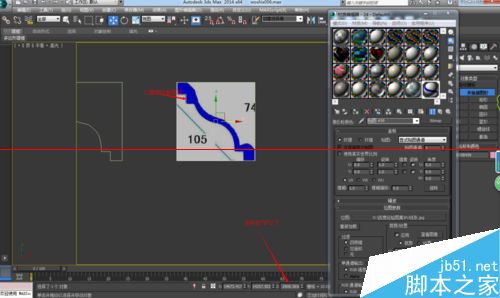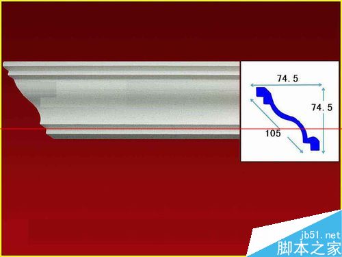3、創(chuàng)建一個(gè)長(zhǎng)方體根據(jù)石膏線的尺寸,并將圖片作為材質(zhì)賦予給長(zhǎng)方體。