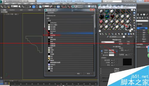6、選擇剛繪制的二維線,然后進(jìn)入“修改命令面板”—“修改命令列表”—選擇“倒角剖面”這個(gè)命令,然后點(diǎn)擊這個(gè)命令里的“拾取剖面”,再點(diǎn)擊我們剛根據(jù)石膏線繪制的那條直線。