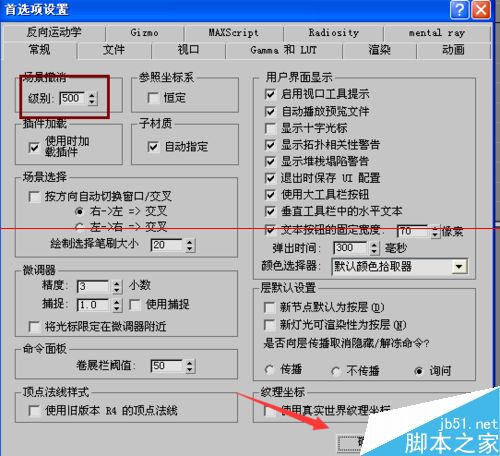 6、我們把場(chǎng)景撤銷級(jí)別改成500這個(gè)最大的設(shè)置,然后我們點(diǎn)擊下邊的確定完成我們的設(shè)置。