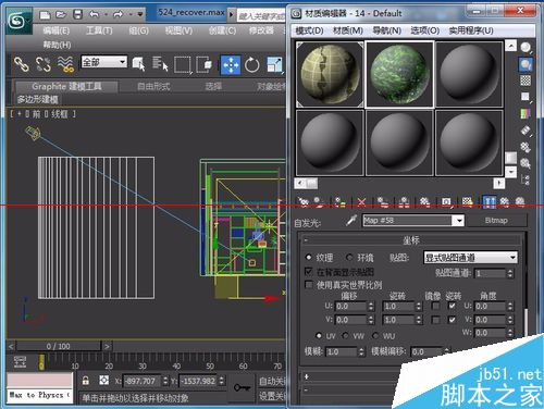 5、按m快捷鍵,為弧添加發(fā)光材質(zhì),然后賦予外景圖片jpg