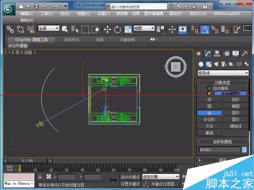 2、在創(chuàng)建面板中選擇圖形-->弧