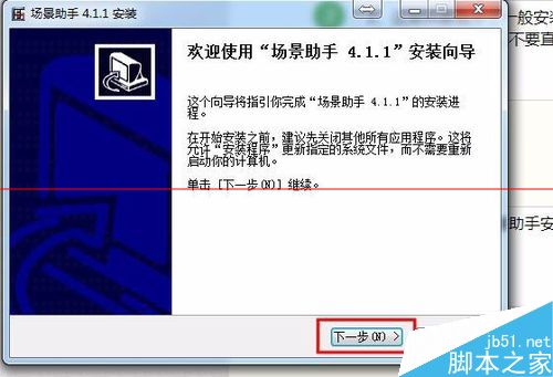 3、接著會彈出一個場景助手安裝向導,這里點擊下一步。