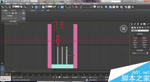 5、用"選擇并移動"工具選2號長方體,然后按住Shift鍵在頂視圖中向右移動復制2個長方體到如圖所示位置