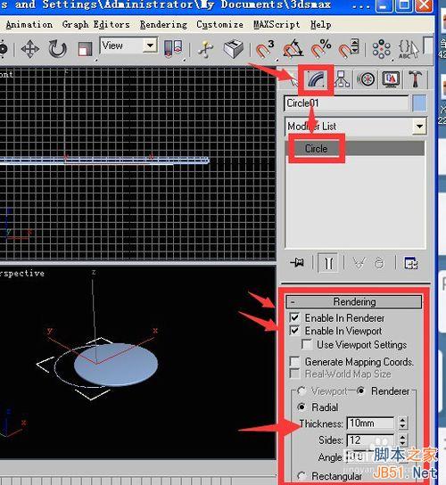 在線形中創(chuàng)建一個cycle 設(shè)置半徑為150 在rendering中勾選在渲染中啟用 調(diào)整厚度 勾選在視口中啟用
