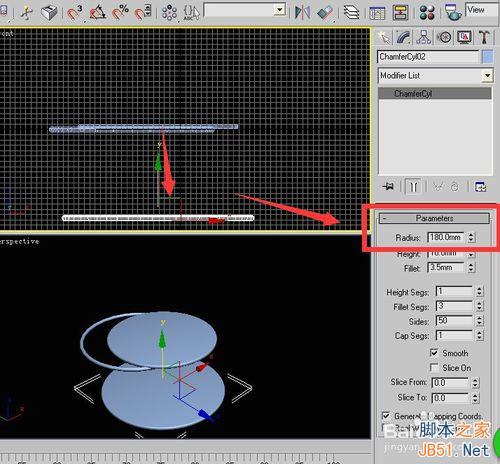 在前視圖沿著y軸復(fù)制這個圓 修改半徑為180