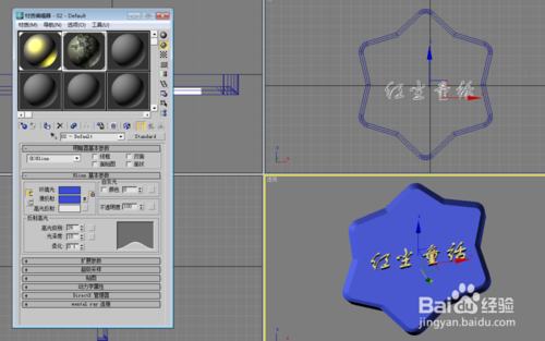 在工具欄中,選擇星形,在前視圖繪制六角星,修改其參數;效果;