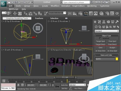 2、添加一個(gè)目標(biāo)聚光燈,調(diào)整位置,