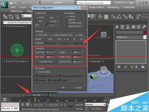 6、下面是動畫,開始時間,長度,默認的開始時間是0,長度是100,結束時間,100,幀數為101,當前時間,就是當前在哪一幀的位置。