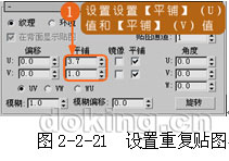 在【坐標】卷展欄中設置水平【平鋪】貼圖值為3.7,垂直【平鋪】貼圖值為1,如圖2-2-21所示。