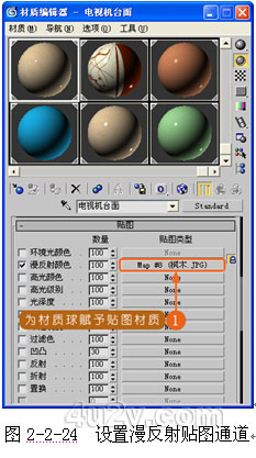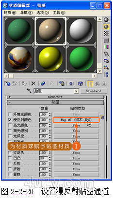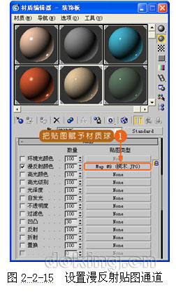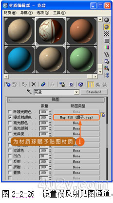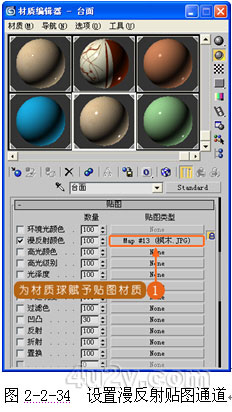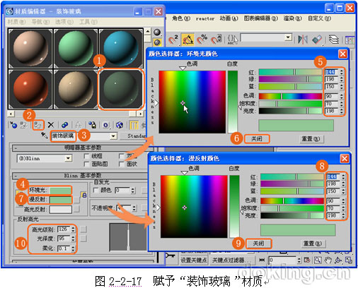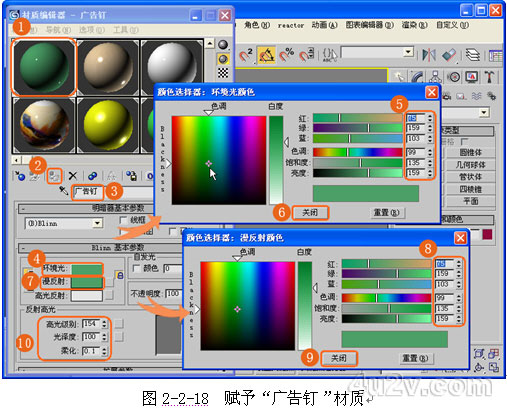 設置它的漫反射色和環境色,具體操作步驟與參數設置如圖2-2-18所示。