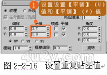 在【坐標】卷展欄中設置水平【平鋪】貼圖值為3.7,垂直【平鋪】貼圖值為1,如圖2-2-16所示。