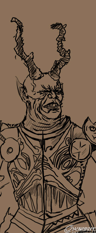 一個好的作品取決于他的設計,設計的好壞會決定作品的質(zhì)量。我的設計靈感來源于《魔獸爭霸》里的惡魔獵手,經(jīng)過自己無意識的修改,草稿如下: